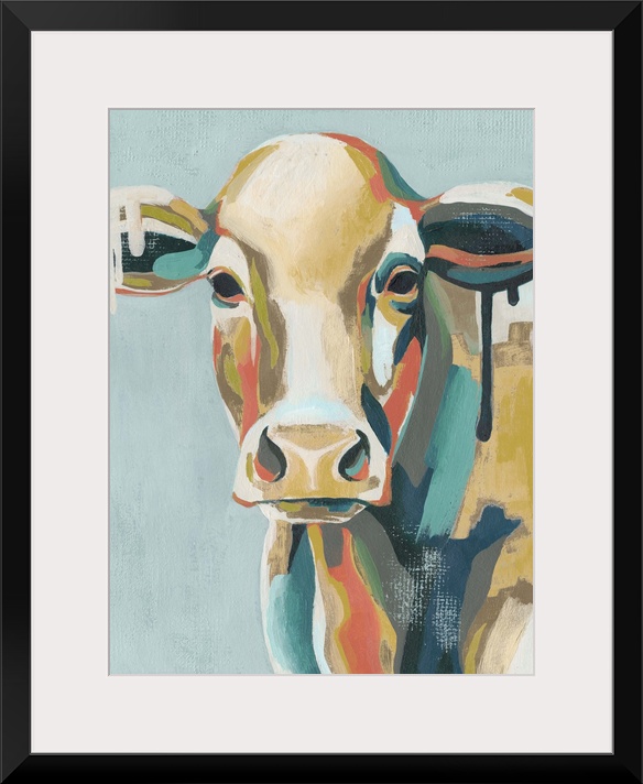 Blue Wall Art Decorative Art Painting Grace Popp Wildlife Cow