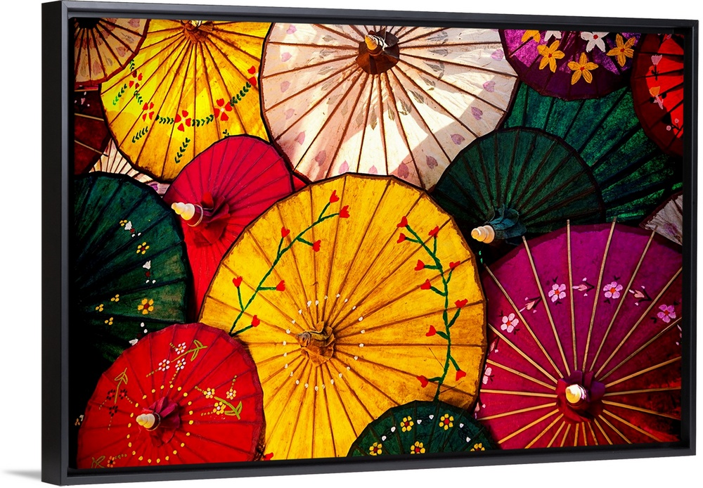 <p>Colorful hand painted paper umbrellas in Inle Lake, Burma</p>