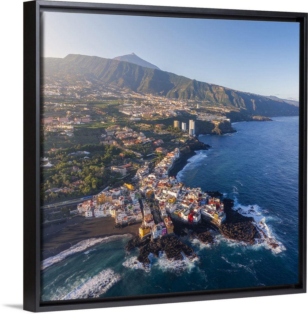 <p>Colorful houses in Punta Brava with Teide in the background, Puerto de La Cruz, Tenerife, Canary Islands, Spain.</p>