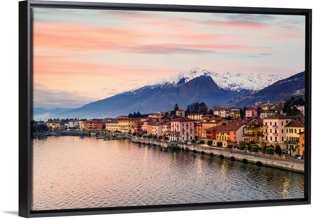<p>Colorful houses of Gravedona and mountains at dawn, Lake Como, province of Como, Lombardy, Italian Lakes, Italy, Europe</p>