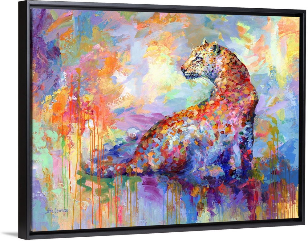 <p>Contemporary painting of a vibrant and colorful leopard.</p>