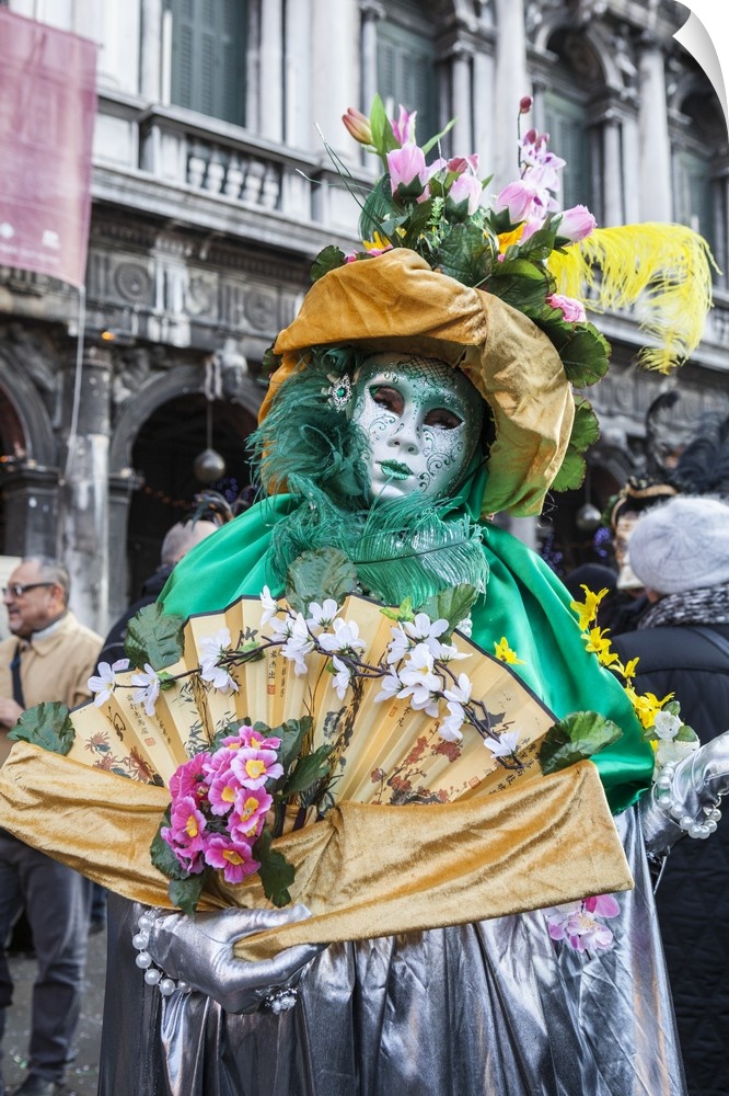 <p>Colourful mask and costume of the Carnival of Venice, famous festival worldwide, Venice, Veneto, Italy</p>