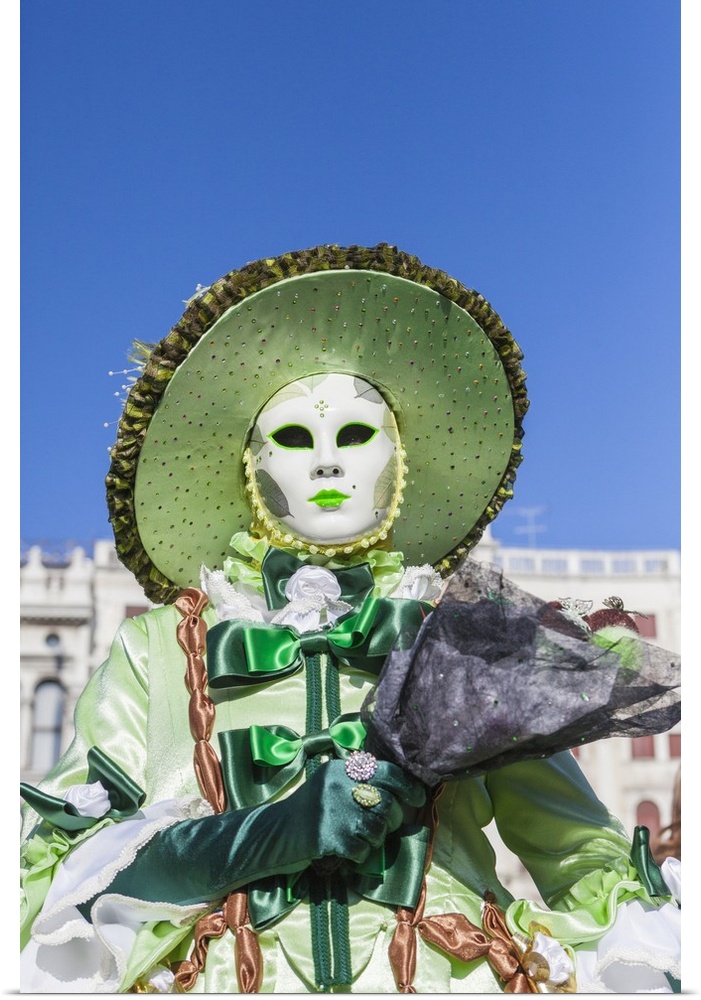 <p>Colourful mask and costume of the Carnival of Venice, famous festival worldwide, Venice, Veneto, Italy</p>