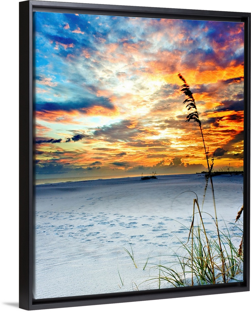 <p>Sea oats seen swaying in a breeze. Named Sky Fire for its sky set ablaze in dark red. Landscape taken in Fort Walton Beach, FL.</p>