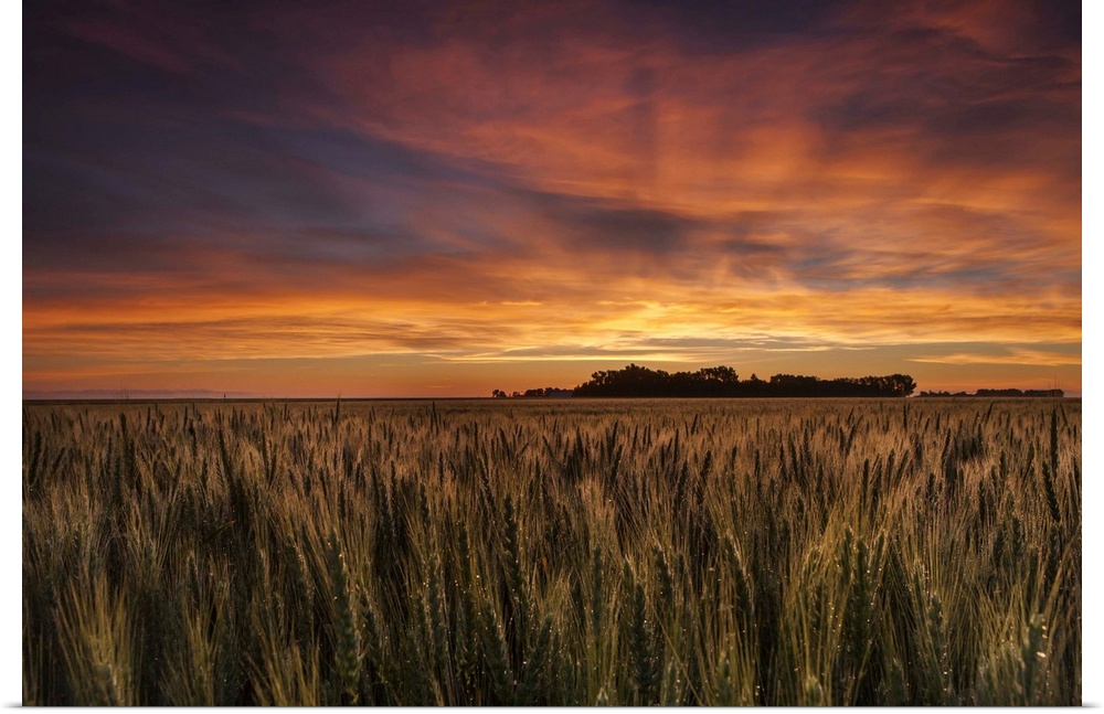 <p>Colourful Sky At Sunrise Over A Wheat Field; Saskatchewan, Canada</p>