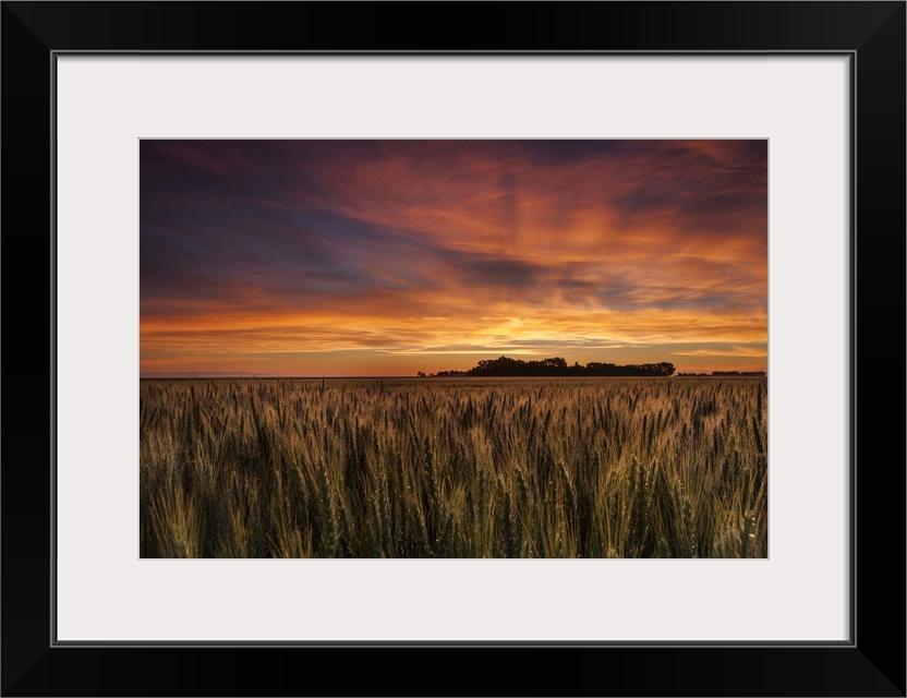 <p>Colourful Sky At Sunrise Over A Wheat Field; Saskatchewan, Canada</p>