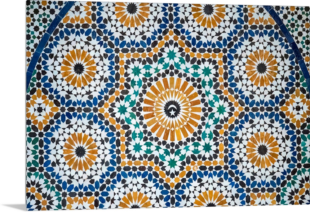 <p>Morocco, Marrakech-Safi (Marrakesh-Tensift-El Haouz) region, Marrakesh. Colorful tiled mosaic at Marrakech Museum, housed in the 19th century Dar Menebhi Palace.</p>