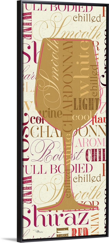 <p>Contemporary artwork of a white wine glass against a background of text.</p>