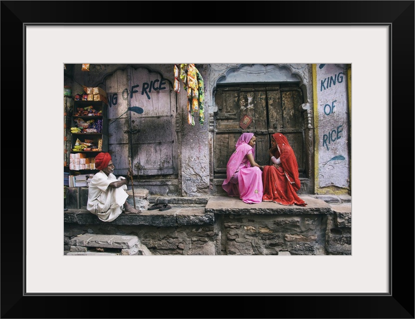 <p>Colorful woman and man with turban in the Blue City of Jodhour, India.</p>