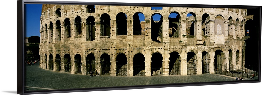 <p>Panorama of the Roman Colosseum with detail of the arches.</p>