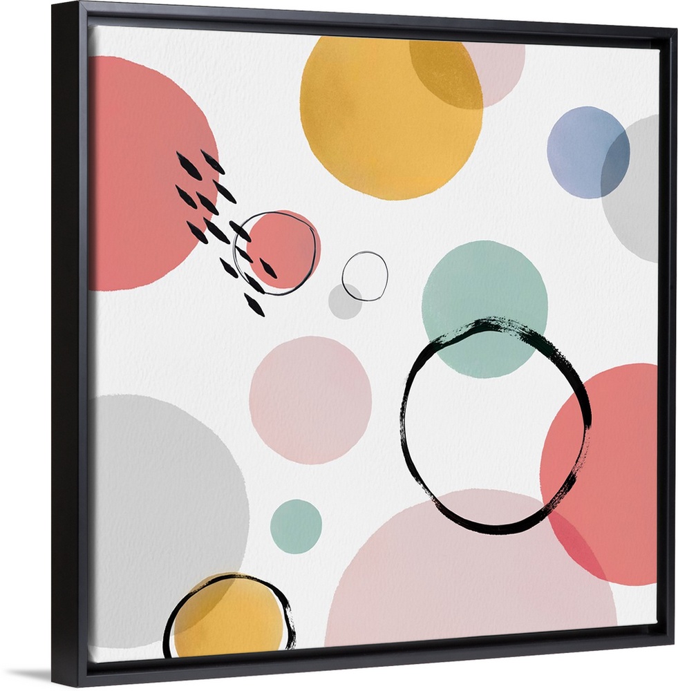 <p>Square modern design of varies circles in pastel colors and overlapping rings.</p>