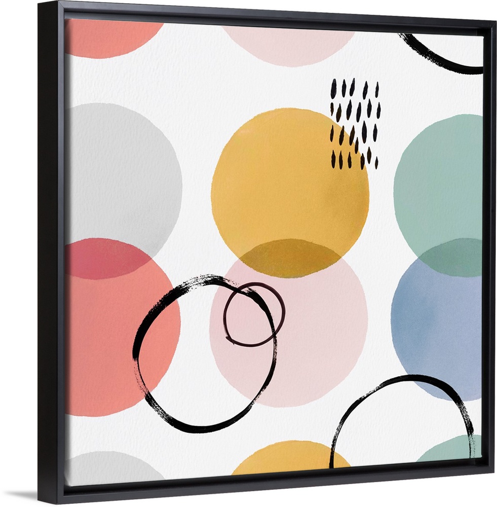 <p>Square modern design of varies circles in pastel colors and overlapping rings.</p>