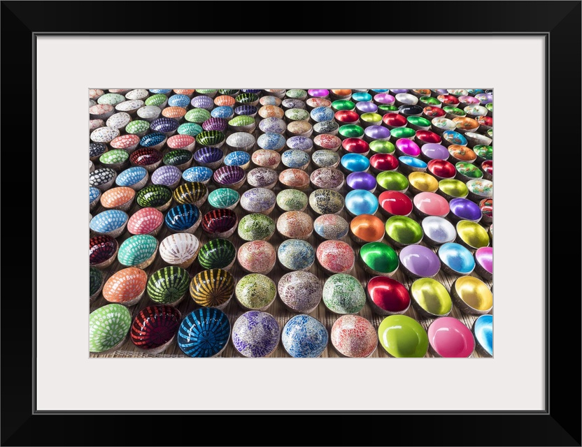 <p>Colourful bowls made out of coconut shells, Sapa, Sa Pa District, Lao Cai Province, Vietnam</p>