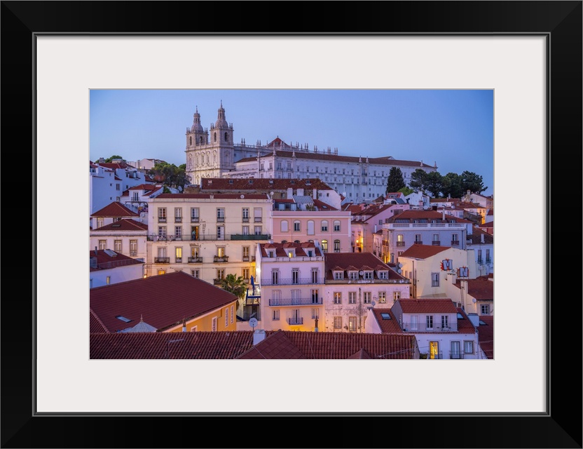<p>View of colourful buildings and red rooftops at dusk in the Alfama District, Lisbon, Portugal, Europe</p>