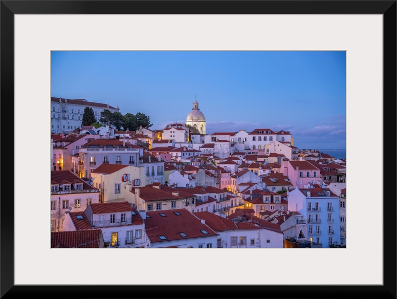 <p>View of colourful buildings and red rooftops at dusk in the Alfama District, Lisbon, Portugal, Europe</p>