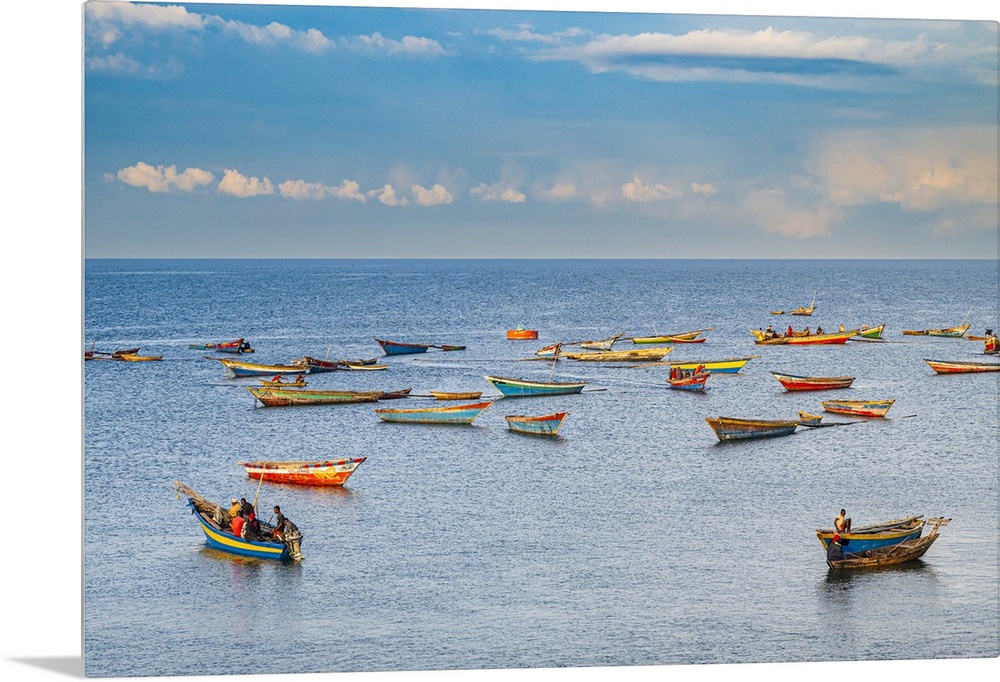 <p>Colourful fishing boats in Kigoma, Lake Tanganyika, Tanzania, East Africa, Africa</p>