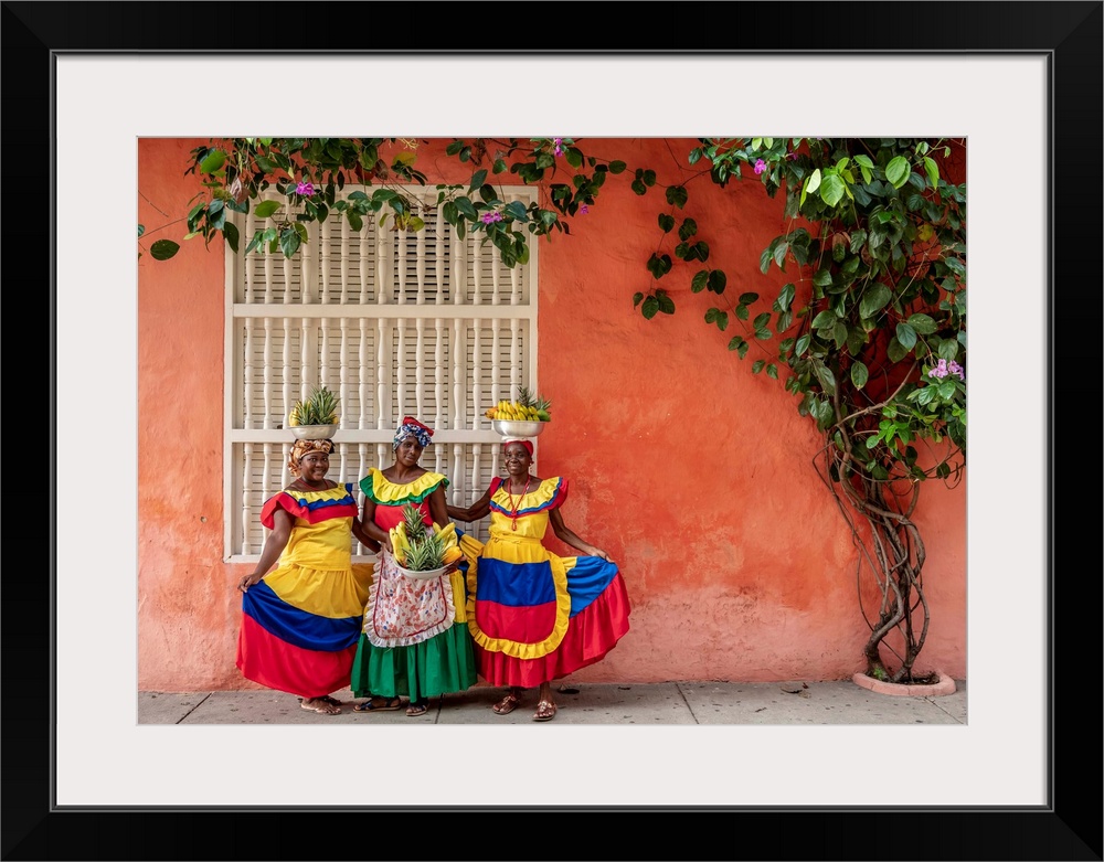 <p>Colourful Palenqueras selling fruits on the street of Cartagena, Bolivar Department, Colombia (MR).</p>