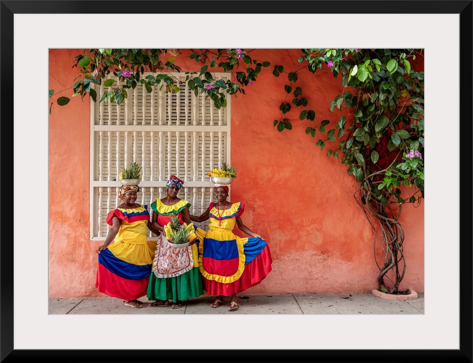 <p>Colourful Palenqueras selling fruits on the street of Cartagena, Bolivar Department, Colombia (MR).</p>