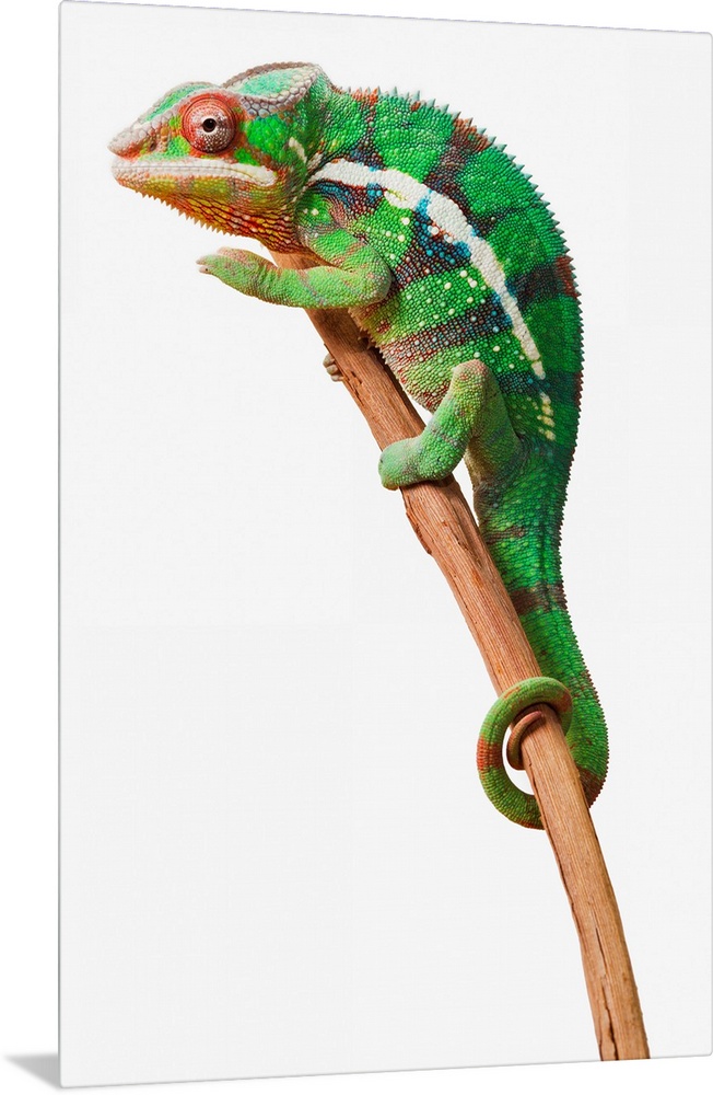 <p>Colourful Panther Chameleon (Furcifer pardalis) on a white background; St. Albert, Alberta, Canada</p>