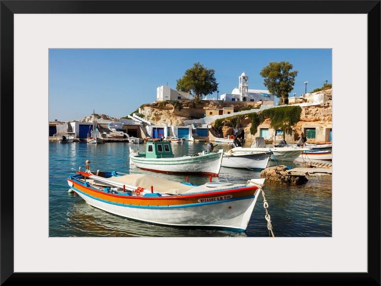 <p>Colourful port of Mandraki on the island of Milos, Cyclades, Greece.</p>