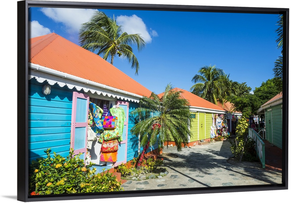 <p>Colourful souvenir shops in Roadtown, Tortola, British Virgin Islands, West Indies, Caribbean</p>