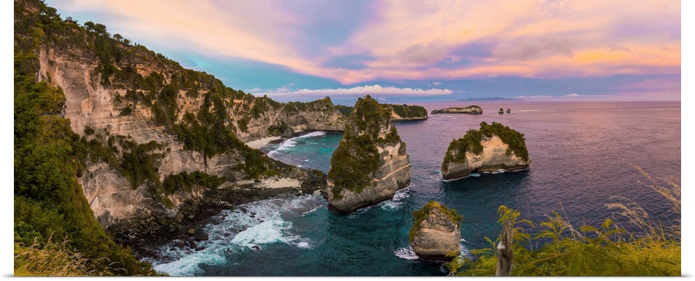 <p>Colourful sunset panorama of Diamond Beach, Nusa Penida, Bali, Indonesia, Nusa Penida, Bali, Indonesia</p>
