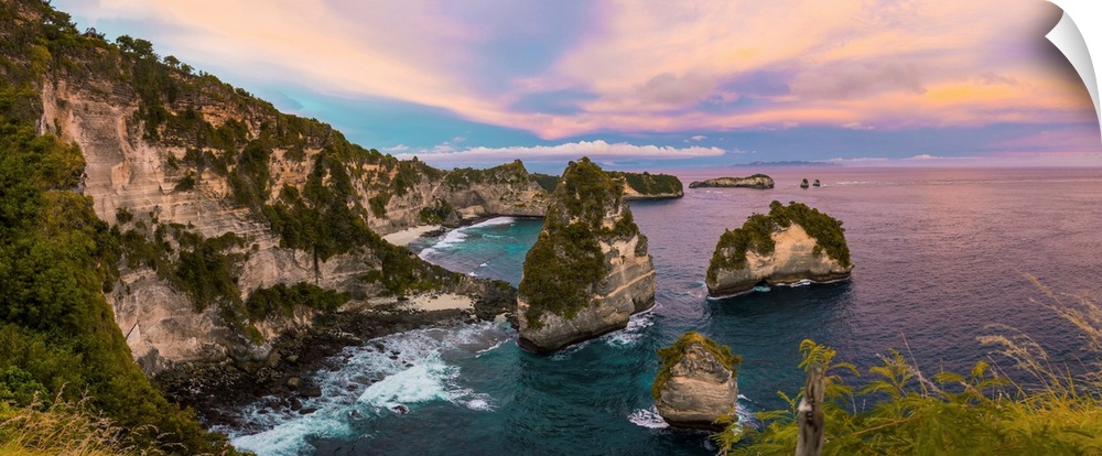 <p>Colourful sunset panorama of Diamond Beach, Nusa Penida, Bali, Indonesia, Nusa Penida, Bali, Indonesia</p>