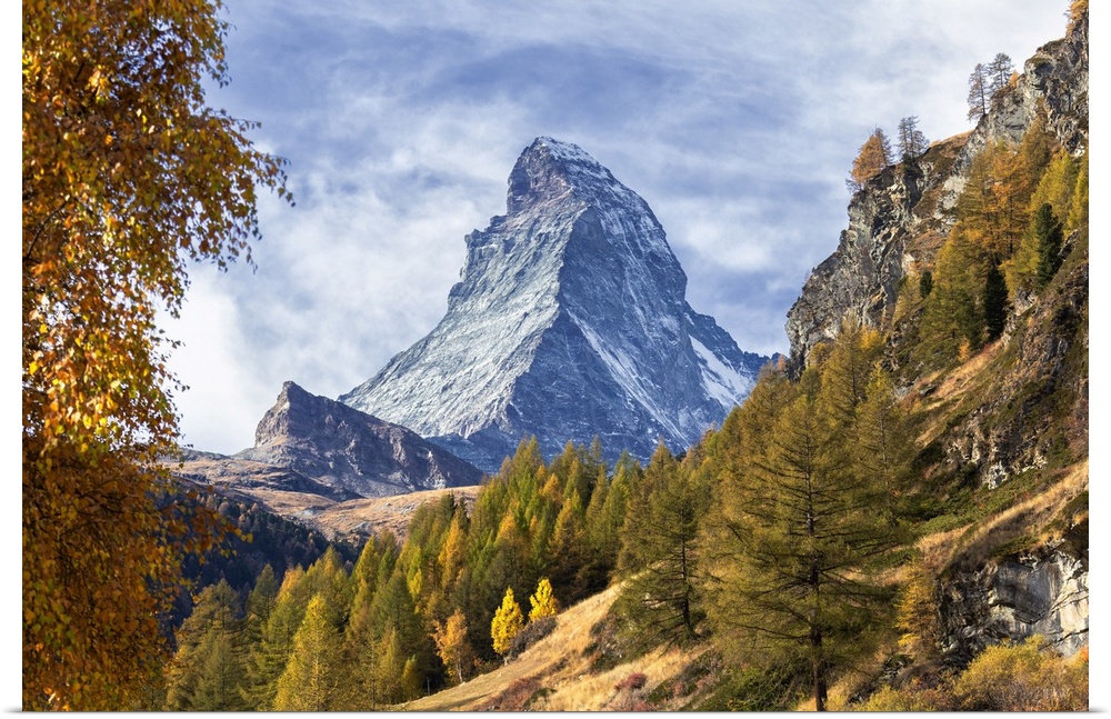 <p>Colourful trees in autumn with Matterhorn in the background. Zermatt, Mattertal, Canton of Valais, Switzerland, Europe.</p>