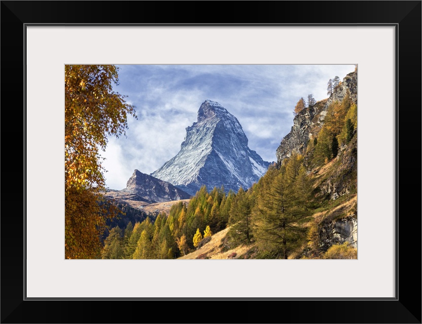 <p>Colourful trees in autumn with Matterhorn in the background. Zermatt, Mattertal, Canton of Valais, Switzerland, Europe.</p>