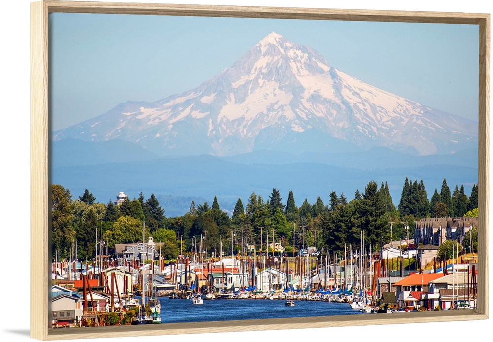 <p>View of a marina in Columbia River with Mount Hood in the background, Portland, Oregon.</p>