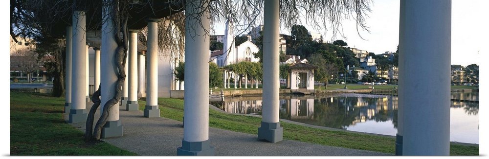 <p>Columns at lakeside, Lake Merritt, Oakland, Alameda County, California, USA</p>