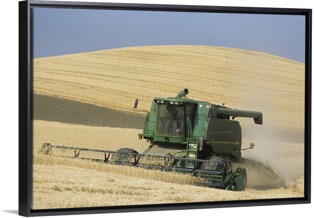 <p>Combine harvester harvesting golden wheat, late Summer, Washington State, USA</p>