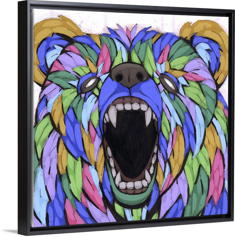 <p>Pop art painting of a growling bear, appearing to be made of leaves.</p>