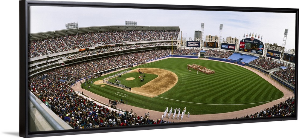 <p>Large image print of a packed baseball stadium in Illinois with a game about to start.</p>