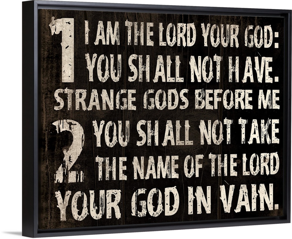 <p>Religious typography art, with the first two commandments in a weathered, rustic look.</p>