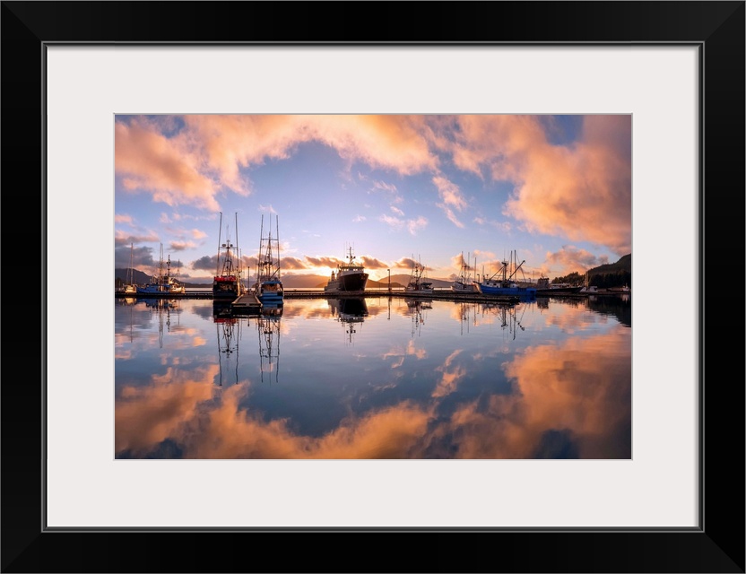 <p>Commercial fishing boats in Auke Bay at sunset, Southeast Alaska; Juneau, Alaska, United States of America.</p>