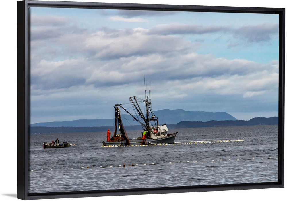 <p>North America, USA, Alaska, Kodiak, Chiniak Bay. Commercial fishing for salmon near a beach on Kodiak Island.</p>