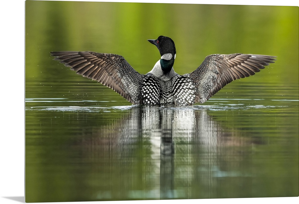 <p>Common Loon (Gavia immer) in breeding plumage on the water; Whitehorse, Yukon, Canada.</p>