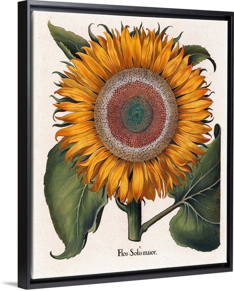 <p>Basilius Besler, The Common Sunflower (Flos Solis Maior), hand-colored copper engraving, 1713, published by Eichstaett</p>