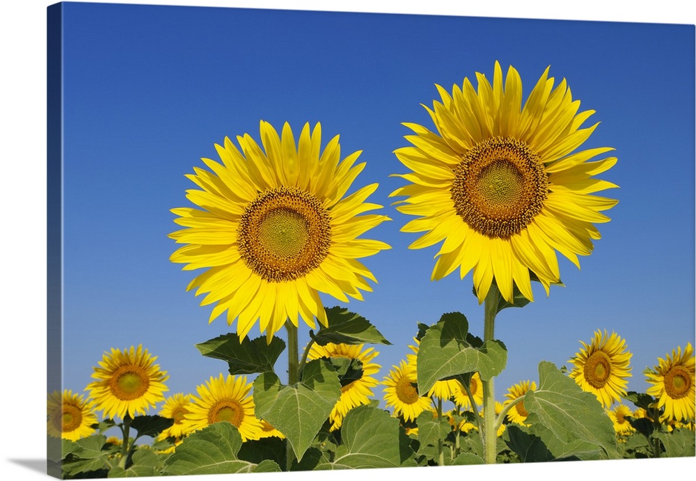 <p>Common Sunflowers (Helianthus annuus) against Clear Blue Sky, Tuscany, Italy</p>