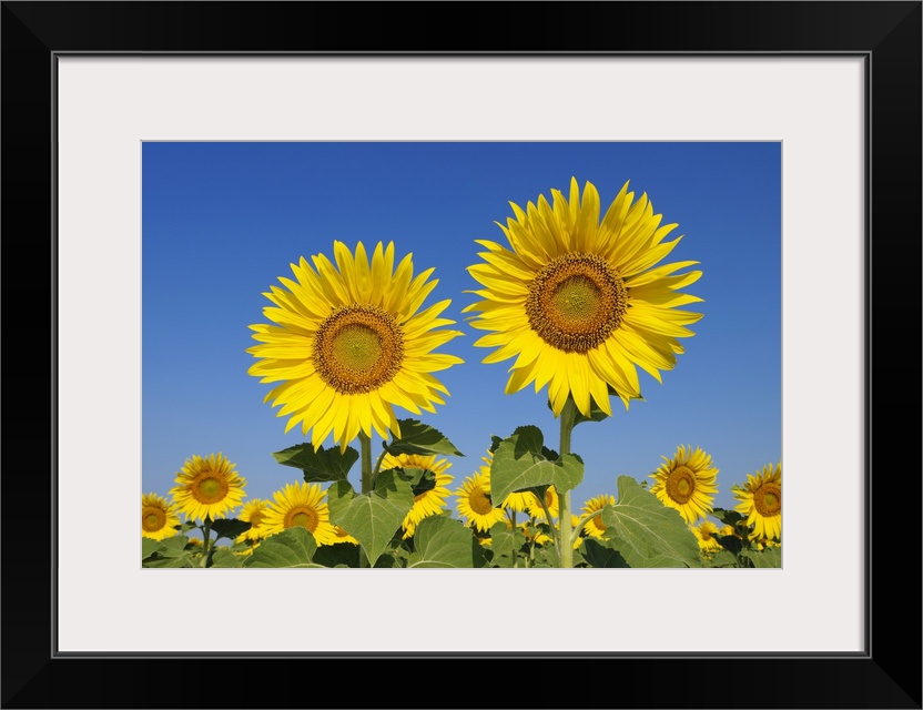 <p>Common Sunflowers (Helianthus annuus) against Clear Blue Sky, Tuscany, Italy</p>