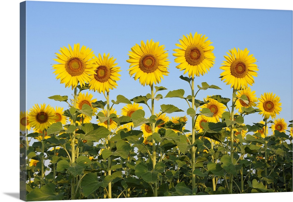 <p>Common Sunflowers (Helianthus annuus) against Clear Blue Sky, Tuscany, Italy</p>