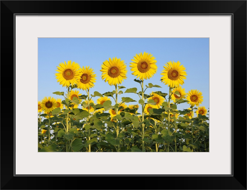 <p>Common Sunflowers (Helianthus annuus) against Clear Blue Sky, Tuscany, Italy</p>
