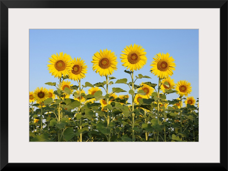 <p>Common Sunflowers (Helianthus annuus) against Clear Blue Sky, Tuscany, Italy</p>
