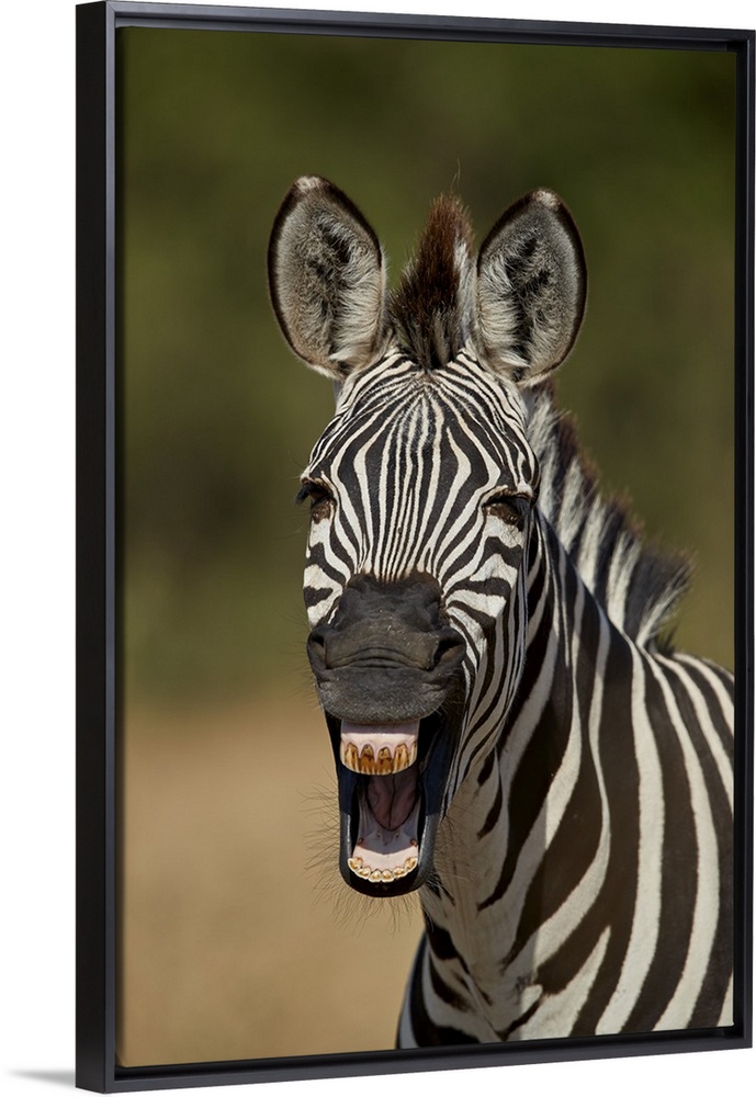 <p>Common zebra yawning, Ruaha National Park, Tanzania</p>