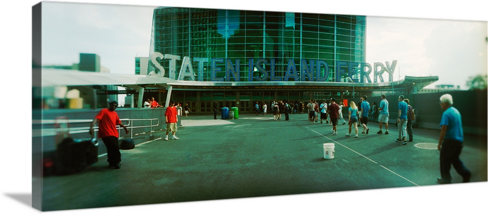 Commuters in front of a ferry terminal Staten Island Ferry New York City New York State