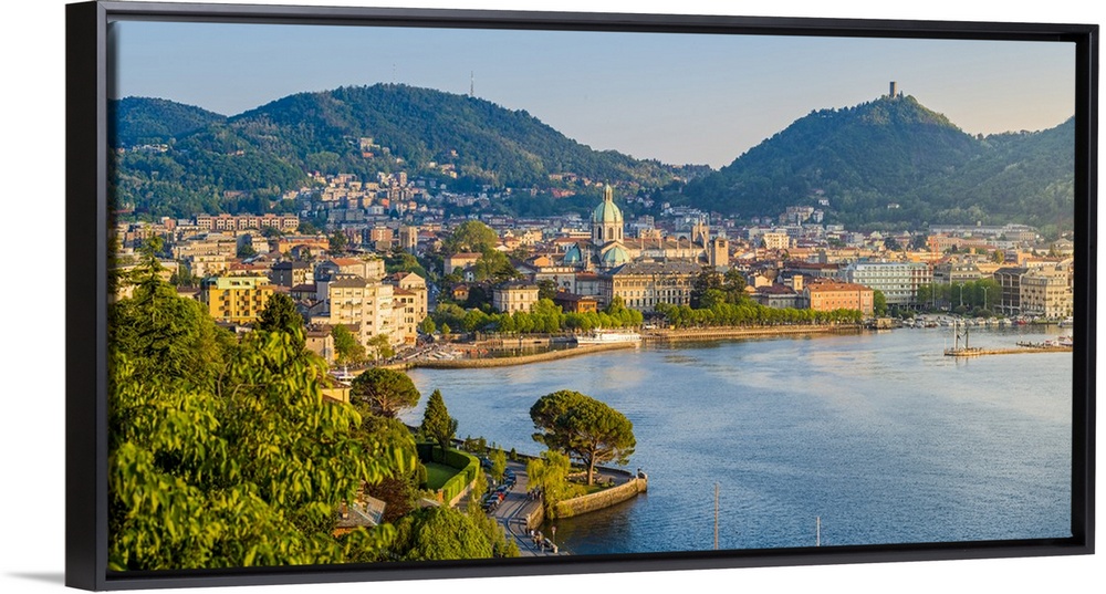 <p>Como, Lombardy, Italy. High angle view cityscape of Como and the lake front, with the Cathedral of Assumption of the Blessed Virgin Mary.</p>