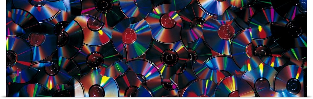 <p>Panoramic piece of a collage that consists of CDs.</p>