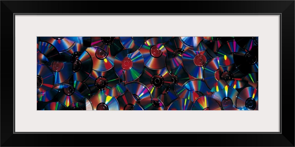 <p>Panoramic piece of a collage that consists of CDs.</p>