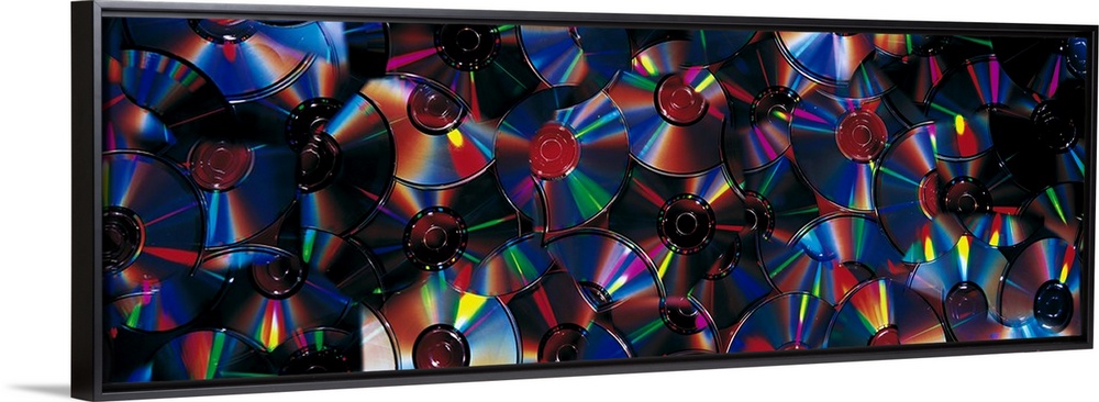 <p>Panoramic piece of a collage that consists of CDs.</p>